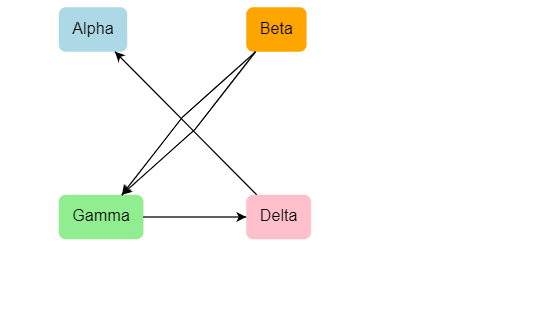 { key: 3, text: 'Delta', color: 'pink', loc: '150 150' }