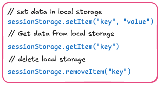 会话存储与本地存储类似,但不会永久存储数据,一旦关闭浏览器标签页,数据就会被删除。它几乎具有与本地存储相同的方法,但我们要使用sessionStorage而不是localStorage。