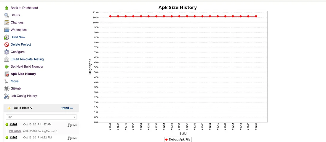 感谢apk大小分析器工具 https://wiki.jenkins.io/display/JENKINS/Android+Apk+Size+Watcher+Plugin ,我们能够跟踪每次新提交的Apk大小,并且如果与之前的构建相比,应用大小超过了特定的阈值增加,它还会使PR无法合并。