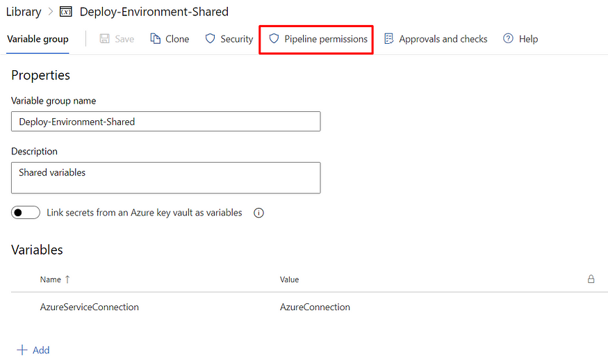 - 创建具有变量组的库 - 以在Pipeline中使用变量,并在不更改代码的情况下进行编辑。