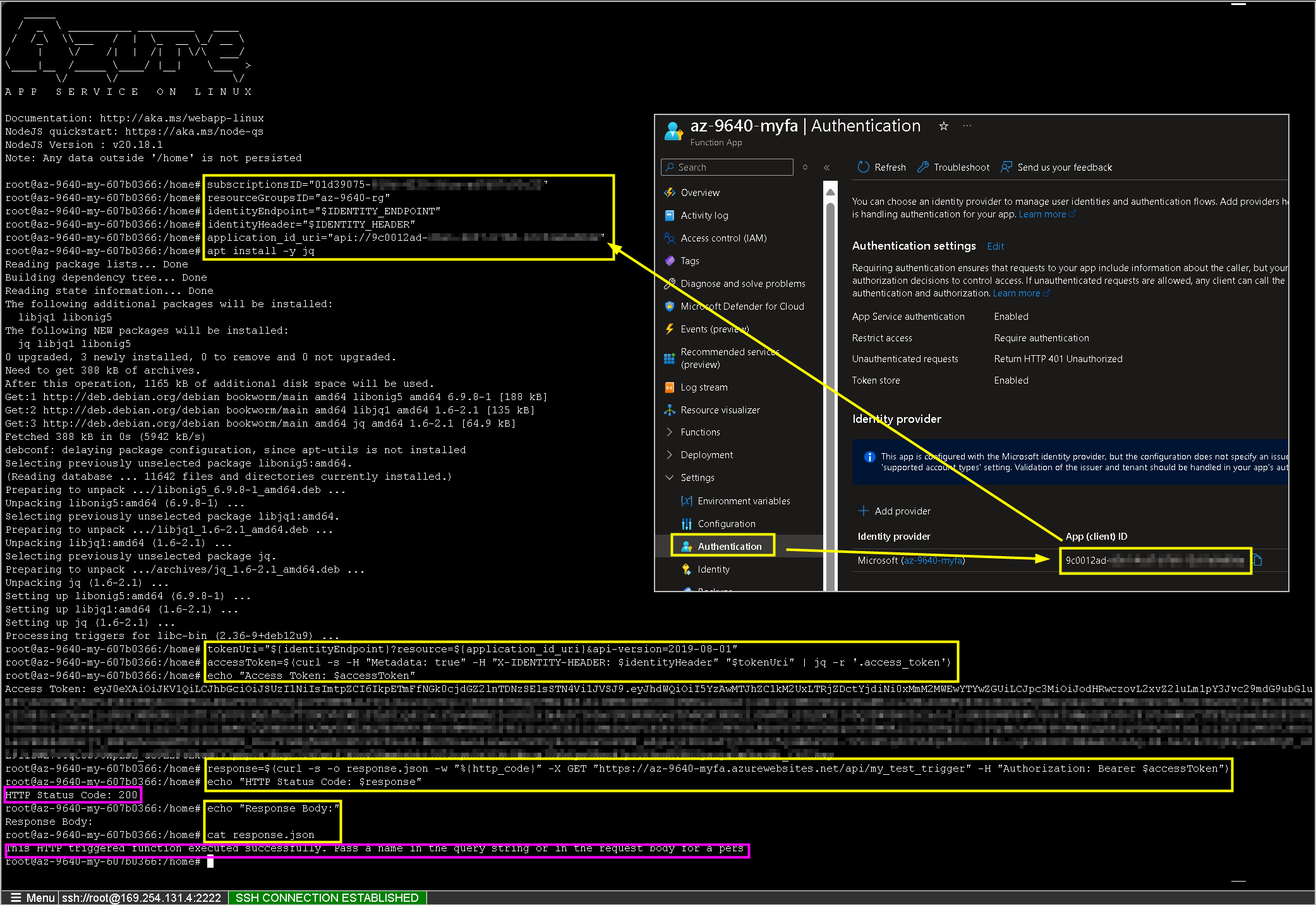 response=$(curl -s -o response.json -w "%{http_code}" -X GET "https://az-9640-myfa.azurewebsites.net/api/my_test_trigger" -H "Authorization: Bearer $accessToken")